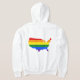 Hoodie with LGBT (lesbian, gay, bisexual, and transgender people) rainbow stripes on map of The USA (United States of America), rainbow pride design, by pinkbrickroad