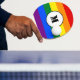 Ping Pong Paddle med HBT-personer (lesbisk, homosexuella, bisexuella och transpersoner) regnbåge i rand pride flagga, stripe mönster med anpassade i form av en mall
