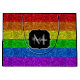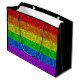 Anpassa faux-presentväskan med låg födelsedagsfest med din första och namn. Smaklig HBT-flagga i pulverröda, orange, gult, grönt, blåa och lila-pulserande glitter-gnistor. *Bilden av miniatyrbilder är inte glitter!