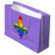 Utformning med fleur-de-lis-symbol (fleur-de-lys eller lily-blomma) med regnbåge från rand från HBT-flagga (lesbisk, homosexuella, bisexuella och transpersoner), gay pride-utformning på lilans bakgrund