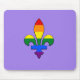 Utformning med fleur-de-lis-symbol (fleur-de-lys eller lily-blomma) med regnbåge från rand från HBT-flagga (lesbisk, homosexuella, bisexuella och transpersoner), gay pride-utformning på lilans bakgrund
