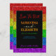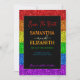 Personalisera faux sparkly inbjudan med information om namn och bröllop. Fira kärlek med en unik snyggt samma gender som bröllop. Smaklig HBT-flagga i pulverröda, orange, gult, grönt, blåa och lila-pulserande glitter-gnistor. *Bilden av miniatyrbilder är inte glitter!