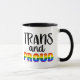 LGBT Pride quote: "Trans and proud." Our mugs are available in a variety of styles, sizes and color combinations.
