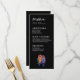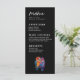 Vi presenterar det smala menykortet från "Eternity Collection", ett sofistikerat och elegant tillägg till din bröllopsmottagning. Längst upp på kortet, mot bakgrund av djup svart, visas bildtexten "Menu" på ett bra sätt. Tillsammans med en vacker illustration av två uggla som är riktade mot varandra, fångar konstruktionen kärnan av enighet och kärlek. Under rubriken presenteras ett noggrant kursiverat urval av måltider, som var och en listas med stor noggrannhet. Gästerna bjuds in att gå från aptiserare till bönder och efterrätter till en kulinarisk resa som återspeglar parets smak och preferenser. Gästerna möts med ett hjärtligt budskap från paret, som tillför ett personligt och intimt tryck till kortet. Under budskapet visas parets namn elegant, och kortet förseglas med ett varmt och personligt namnteckning. Det förtjusande teckningsarbetet i uggla fortsätter vid grund, vilket garanterar en sammanhängande utformning och snyggt överallt. Det här tunna menykortet är inspirerat av den tidlösa och elegant som den eviga enitetssamlingen ger dig en aning sofistikering och charm till firande i bröllop. Det är gästerna i inbjudan som ska sparka varje ögonblick av denna speciella dag, vilket återspeglar det djupa och varaktiga tema som definierar er kärlek-historia.