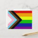 "Progress"-variationen i Rainbow-flagga lägger till en schevron längs den hiss som präglas av svart, brun, ljusblå, rosa och vitt rand för att föra dessa samhällen (marginaliserade människor i färg, transindivider och de som lever med hiv/AIDS och de som har varit borttappadar) i förgrunden. "Pilen pekar på högerna för att visa framåtskridande, medan det är längs den lämnat kant visar att framsteg fortfarande måste göras."