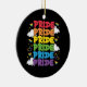 Detta prydnadsämne har det pulserande upprepade "Pridet" från ord med moln och hjärtan från regnbåge, skapar det som ett val av perfekt för medlemmar och allierade i hbt-färgaden, särskilt under Pridets månad.
