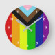 "Progress"-variationen för Rainbow-flagga lägger till en schevon längs hissarna med svart, brun, ljusblå, rosa och vitt rand för att föra dessa samhällen (marginaliserade människor i färg, transindivider och de som lever med hiv/AIDS och de som har varit borttappad) i förgrunden. "Pil visar högerna att gå framåt, samtidigt som man går längs den lämnat kant visar att framsteg fortfarande måste göras."