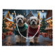 Denna festliga design fångar den glada känslan av semestern, med en bedårande hundar.Snurrad i en vintersaga, komplett med ett dekorerat julgran, och vackert inslagna presenter. Snöflingor faller försiktigt, vilket ger en magisk touch till scenen, medan de levande färgerna på semesterdekorationerna skapar en varm och glad atmosfär.