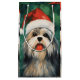 Färgfull och glatt juldesign med en Lhasa Apso försedd med en julhatt.