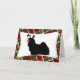 Fun Lhasa Apso Christmas Card has the dog breed silhouette, with reindeer antlers and a bright red glowing nose. The background is a cheery holiday plaid with reds and greens. The inside reads, "Wishing you and your family a wonderful holiday season!" Personalize the message to your own easily. Cute dog lover Christmas cards.