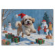 En fluffy Lhasa Apso springa glatt genom snölandskapet och med en röd julhatt. Denna trevliga vinterscen visar rasens långa jackande, lojala natur och lekfull charm samtidigt som den fångar julhelgens värme och magi. En härlig fullt av festlig själ.
