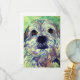 Vattenfärg i Lhasa Apso-Hund på lila, blå, grönt och svart