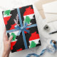 Libanons flagga är överlägsen formen Libanon Karta och Beirut Capital är skriven i arabiska. Vektorillustration isolerad på vitt. Copyright BluedarkArt ChameleonArt.
