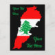 Libanon Karta med Flagga Vykort