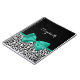 Anpassa genom att lägga till namn från en liten flicka till den här bärbara datorn med svartvit leopard i trendiget med ett gigantiskt klisterband med grönt som är bundet till en söt buskväv. Den här snyggtens djurtrycksdesign är en platt utskriven bild och innehåller inte det faktiska menyfliksområdet.