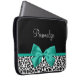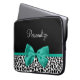 Anpassa genom att lägga till namn från en liten flicka till trendiget svartvit leopard 15'' neoprene laptop sleeve med ett gigantiskt klisterband av grönt som är fastsatt i en söt buskväv. Den här snyggtens djurtrycksdesign är en platt utskriven bild och innehåller inte det faktiska menyfliksområdet.