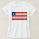 Framsidan av denna t-shirt visningar djärvt Liberias flagga med dess distinkta röda och vita rand med vit stjärna över blå kanton. Detta motsvaras bakåt av ett attraktivt karta i Liberia.