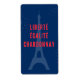 Lustigt på den berömd Fransken "Liberté, égalité, fraternité" för vin älskare: Liberté, Égalité, Chardonnay! Skål, ha en underbar vin som dricker party eller bara en avslappnande kväll hemma. Fet röd brev mot blå bakgrund, med Eiffel Torn från Paris synlig.