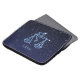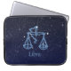 Laptop sleeve med symbolen för Libra i blått silver, överdragen med konstellationens stjärnor, mot bakgrund av himlar, graderad från djup midnattsblå till svart
