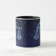Mugg med zodiaksymbolen för Libra i mjuk blått silver, överdragen med stjärnan, mot en himlar-stjärnbakgrund som är graderad från djup midnattsblå till svart