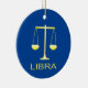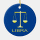 Den här fantastisk-dekorationen har en digital konsbild av ett par golden färgad med vägningsskalor med ord Libra under guld. En roligt för människor som firar en födelsedag som föddes mellan den 23 september och den 22 oktober under stjärntecknet Libra. Det finns anpassningsbar på baksidan så att du kan inkludera ett namn eller ett meddelande.