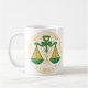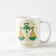 Libra-tecken på zodiaken i grönt och vitt på ett kaffe mugg.
