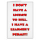 En rolig text som är säker att sätta ett leende på alla ansikte. Textnågot att säga: Jag har inte en licens som ska dödas. Jag har en learners tillstånd!