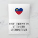 Fin design omfattar lycklig-ballonger och däcksband med ord "Grattis på födelsedagen", som är täckta i färg i Liechtensteins flagga. Designen avslutas med hjärtat i Liechtensteins flagga färg och födelsedagsmeddelandet. Inslag är fullt anpassade med funktionen "Anpassa det!". Det här färgfulla födelsedagskortet är den perfekt som finns för din vän från Liechtenstein. © LänderAvVärlden