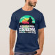 Den här färglösa retro-designen från 1980-talet visar en man som fiskar över en scenisk bakgrund. Ord säger: "Livet är bra. Fisket gör det bättre."