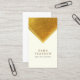 Affärskortet för persontrafik och privat elegant har en enkel utformning som består av en tredubbel texturerad triangel från guld som pekar nedåt från de övre hörnen till den plats där ditt första monogram, namn, namn eller text och tagg visas. Din kontaktinformation visas på baksidan av kortet. Starka, tydliga, moderna, typsnitt används i svart för att kontrastera mot den benvita bakgrunden. Speciellt för speciella färdigheter, färdigheter, utbildade färdigheter, persontjänster, privata tjänster, tjänstekunskaper, professionell, ljusa, vita, guld, rand, starka, professionell, moderna, chic, elegant teman. Denna formgivnings allmänna karaktär gör att den lämpar sig som affärskort för alla typer av företag eller yrken.