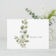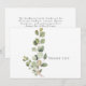 Begravningstack. Familj namn och tack på baksidan. Typografi. Vit bakgrund. Foliage. Enkelt. Eucalyptus. Livets år.