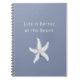Life is Better Beach Blue White Starfish Anteckningsbok