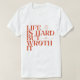 A clean and minimal t-shirt featuring the motivating phrase “Life Is Hard But Worth It.”