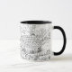 Liggande scen i penna och bläck, svart och vit design på ett kaffe mugg i olika stilar.