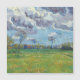 Liggande under Stormy Himlar. Vincent van Gogh. Tur sommarlandskap. Storm på fält. Stor grönt golv med röd tsami. Det finns träd i bakgrunden. Molnen flyter över blå himmel. Reproduktion av berömd av konstverk bilder på det offentliga området.