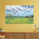 Liggande under Stormy Himlar. Vincent van Gogh. Tur sommarlandskap. Storm på fält. Stor grönt golv med röd tsami. Det finns träd i bakgrunden. Molnen flyter över blå himmel. Reproduktion av berömd av konstverk bilder på det offentliga området.