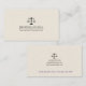 Stylish business card design for prestigious law firm. Beige linen texture, black Justice Scale logo, and customizable text color for cohesive look.
