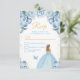 Den här eleganten och den glamorösa OSA kort har en vacker prinsessa med blonda hår i en ljusblå boll-grynt. Texten kombinerar handskript och modernt sans serif typsnitt för ett klassligt och sofistikerat utseende. Blommigten, fjärilen och guld-konetti skapar perfekten blandning av rustika och chic. Perfekt för en sweet sixteen eller födelsedagsfest. Grafik efter www.etsy.com/uk/shop/SunflowerDayLove