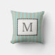 Light Blue & Beige Rand Anpassningsbar Monogram Kudde