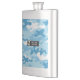 Show your military pride with this stylish blue camouflage flask. The design features a classic blue, white, and light blue camouflage pattern with subtle white polka dots, reminiscent of winter camouflage. Centered on the design is a black badge with the personalized text and a custom logo, perfect for any service member or veteran. This flask is a great way to keep your favorite spirits on hand, whether you're out in the field or enjoying a night out.