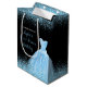 En vacker, ljusblå, matad elegant, vattenfärgad klänning på svart bakgrund med faux glitter överst och grund i en favoritsäck All text kan vara personlig till kostym dina egna behov.