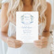 Elegantly refined, this bohemian bridal shower invitation features a delicate crest decorated with blue and white flowers. Accented with modern calligraphy script in a sophisticated light blue tone, this design beautifully captures the essence of a spring or summer bridal shower celebration.