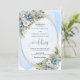 Set the tone for an unforgettable celebration with this elegant watercolor wedding invitation, beautifully designed with dusty blue florals, soft white peonies, and delicate eucalyptus