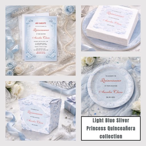 Complete your celebration suite with this light blue and silver princess quinceañera RSVP card. Featuring soft blue tones and elegant silver accents, it perfectly matches your royal 15th birthday theme. Easy to personalize with response details, it adds a stylish and coordinated touch while helping you keep track of your guest list.