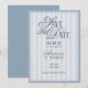 Light Blue Striped Old Money Calligraphy Wedding Spara Datumet