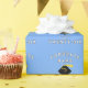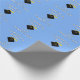 Kreativ studenten klackar för klass "25 grad" med svart studentmössa med guld tassel mot ljusblå bakgrund. Om du vill anpassa redigeringstexten så att namn läggs till.