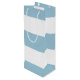 Modern, lätt pastellblått och vitt, tvärstrimlat mönster med monogram för logotyp av anpassningsbarnas lagrets andedräkt för att lägga till din egen ursprungliga text, namn eller text. Anpassningsbar vin presentpåsar för alla tillfälle.