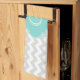 Light Grått White Chevron Aqua Quatrefoil Monogram Kökshandduk