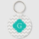 Light Grått White Chevron Teal Quatrefoil Monogram Nyckelring