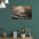 Seascape with powerful waves and sunbeams breaking through dramatic clouds. Sepia tones create a melancholic and inspiring atmosphere. Perfect for decoration, posters and wall art. A work that conveys strength, hope and the untamed beauty of nature in its wildest form.